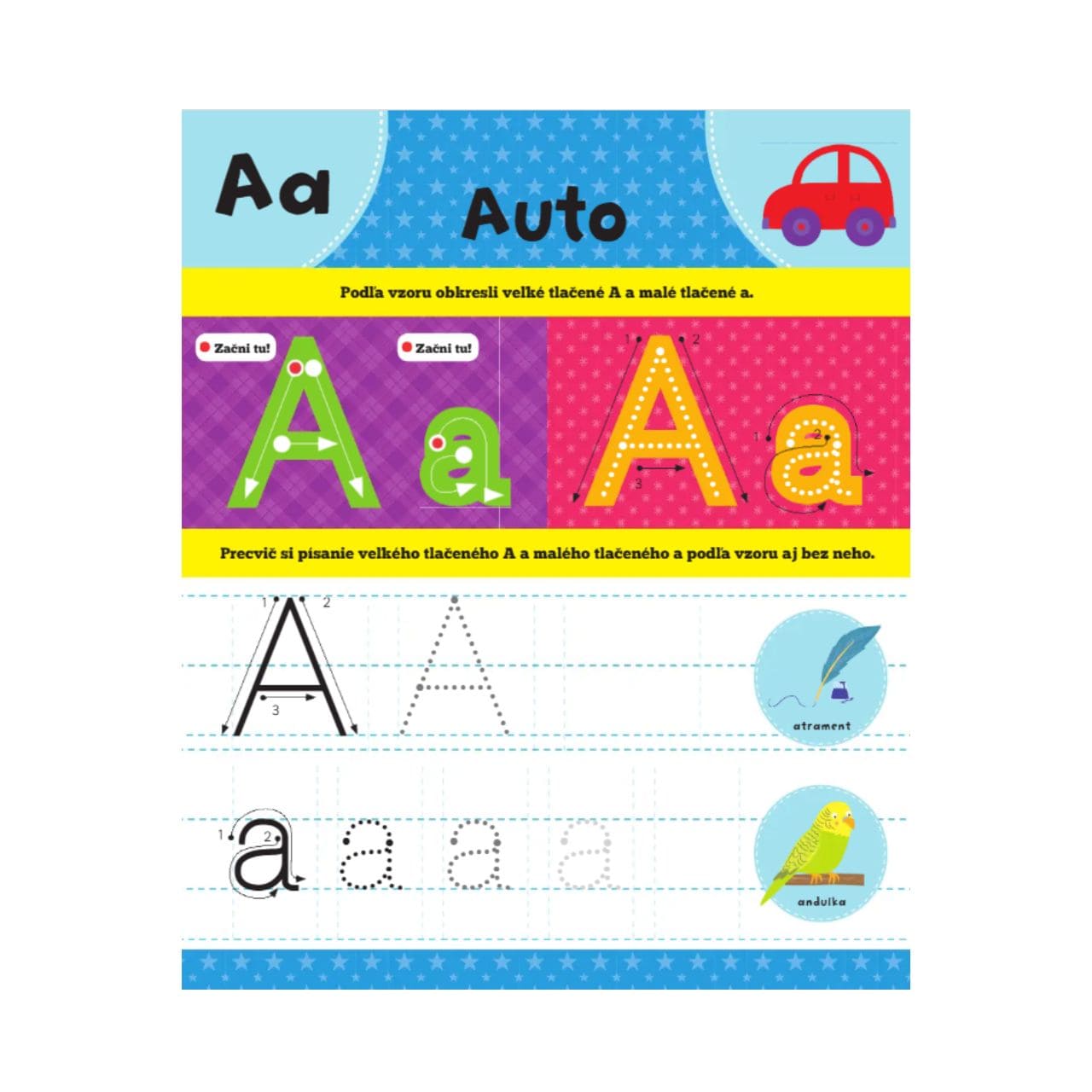 Zábavná interaktívna tabuľa, s ktorou sa deti ľahko naučia písať veľké aj malé písmená tlačenej abecedy.